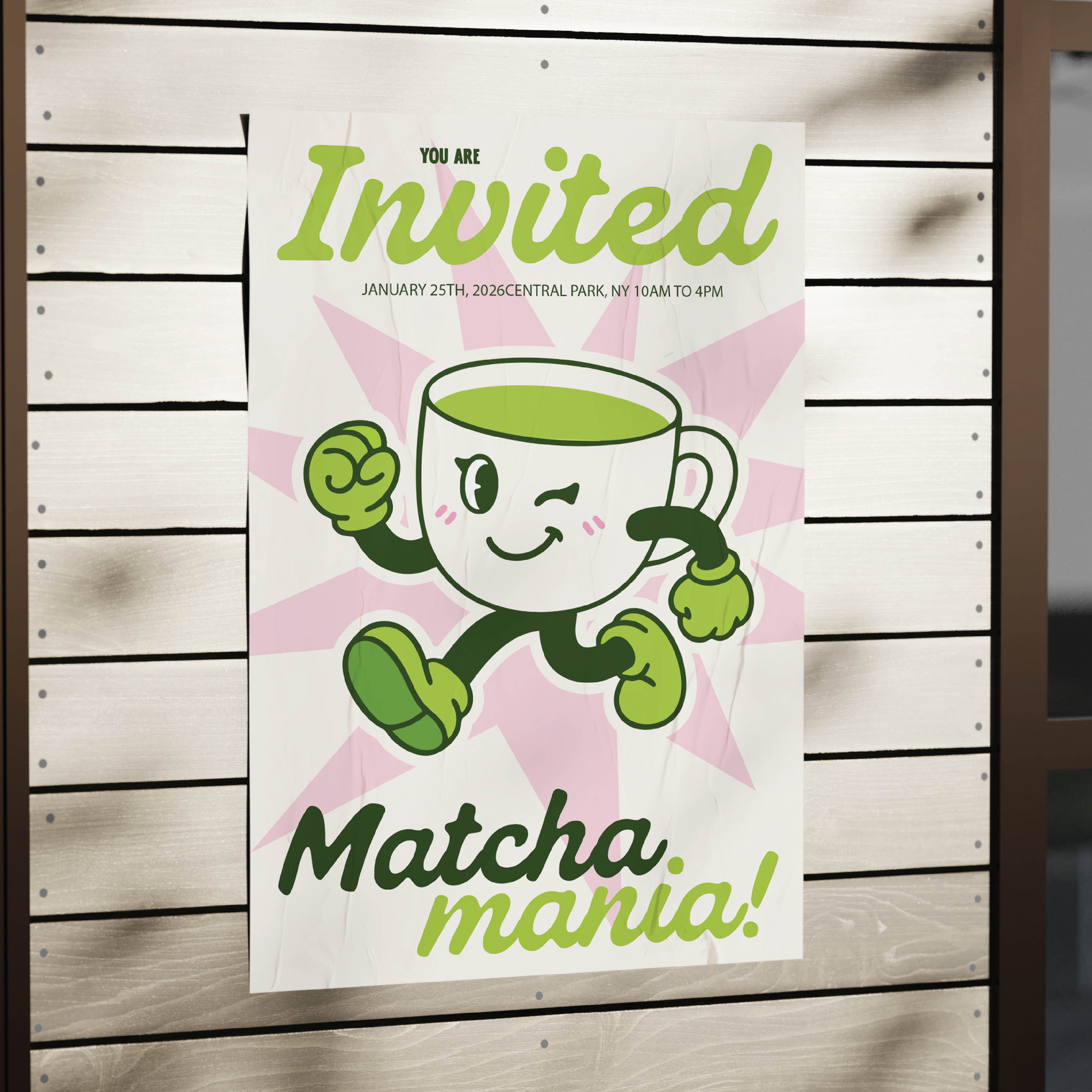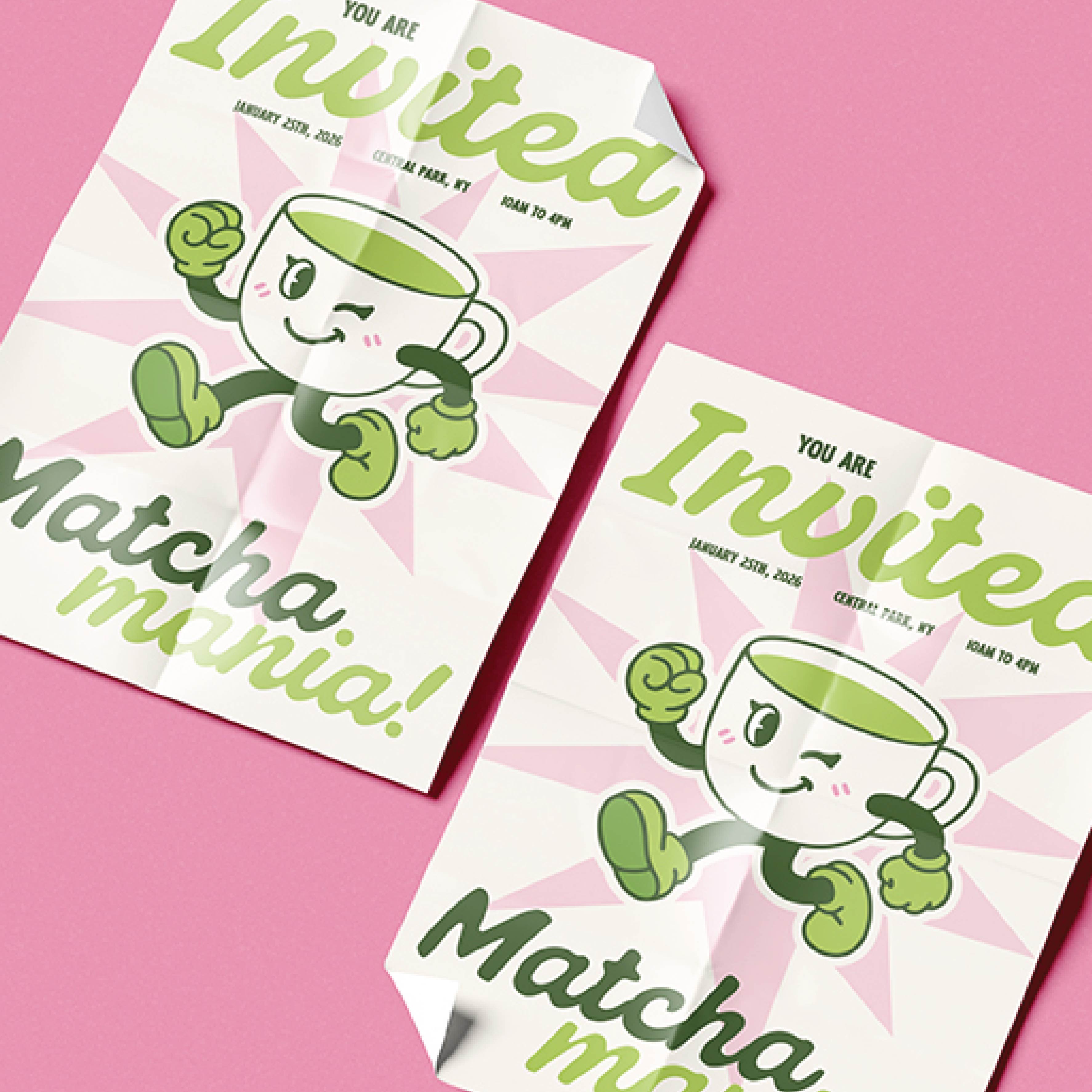 Matcha Mania is a festival identity built around motion, color, and bold shapes. The visual system is expressive, high-energy, and designed to feel fun and inviting.